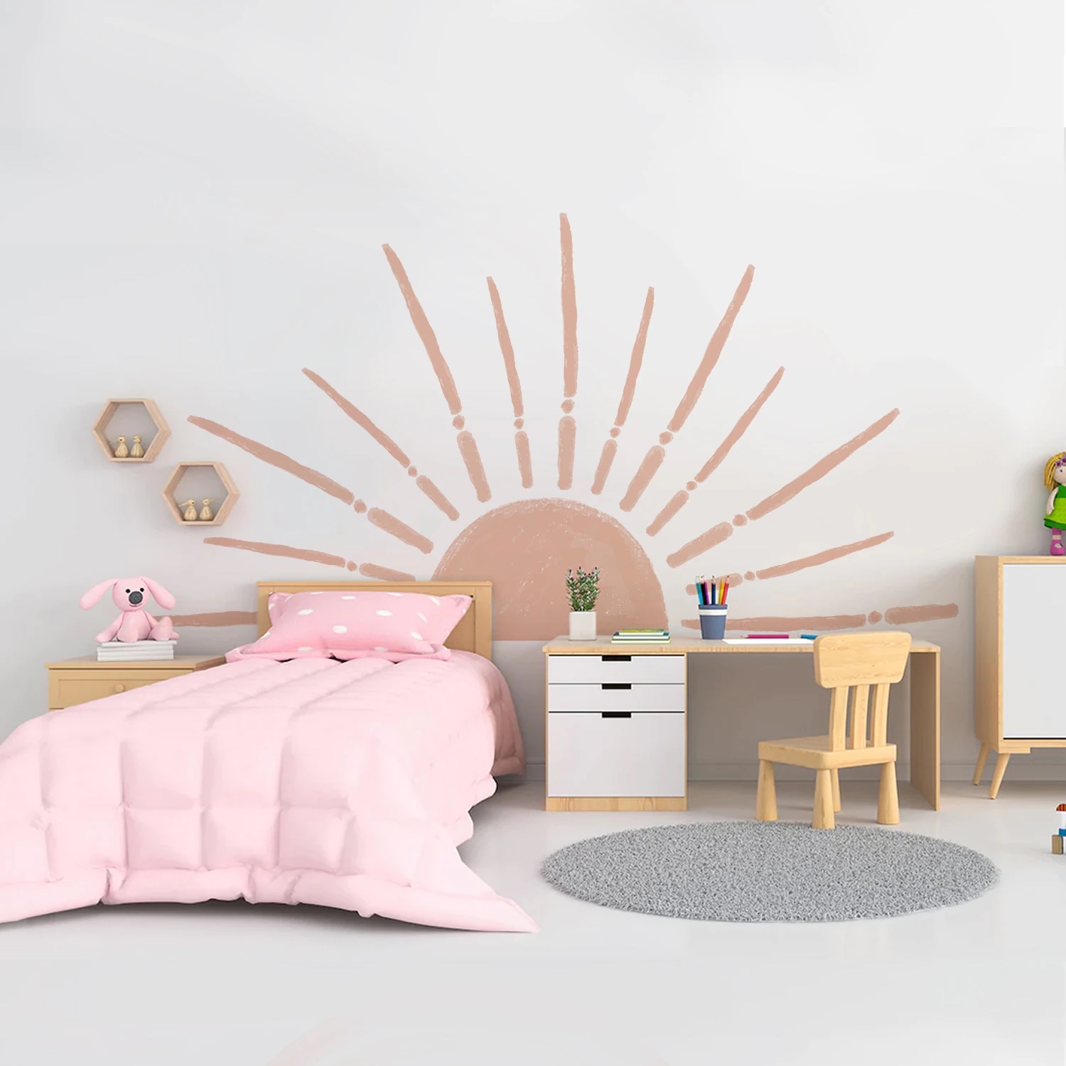 Våra väggdekor är inte bara för skönhetens skull, de är en lekplats i sig. De lockar barn att interagera, skapa egna historier och äventyr. Med varje wallsticker finns en saga som barnen kan fortsätta spinna på, och rummet blir en del av leken.